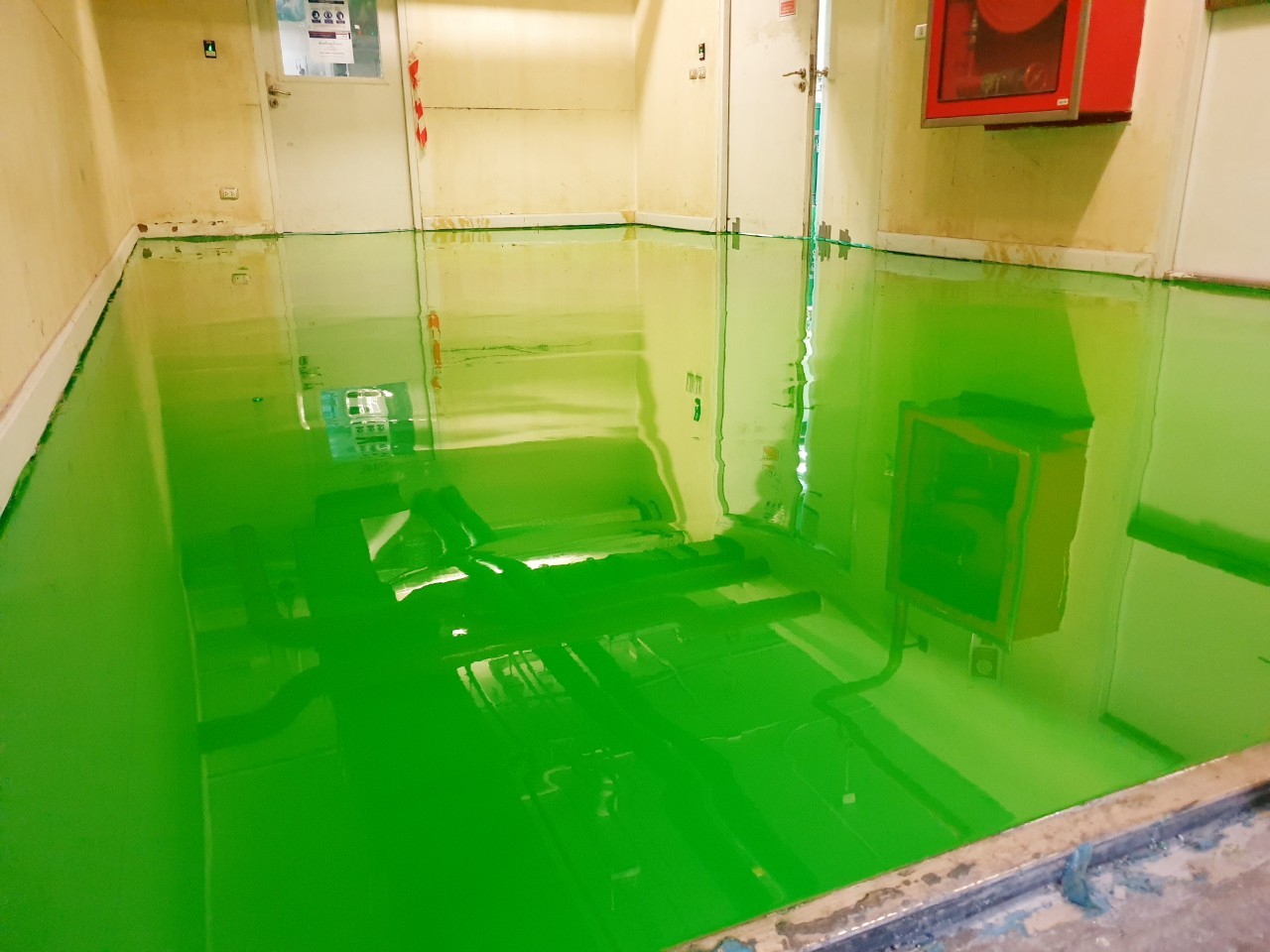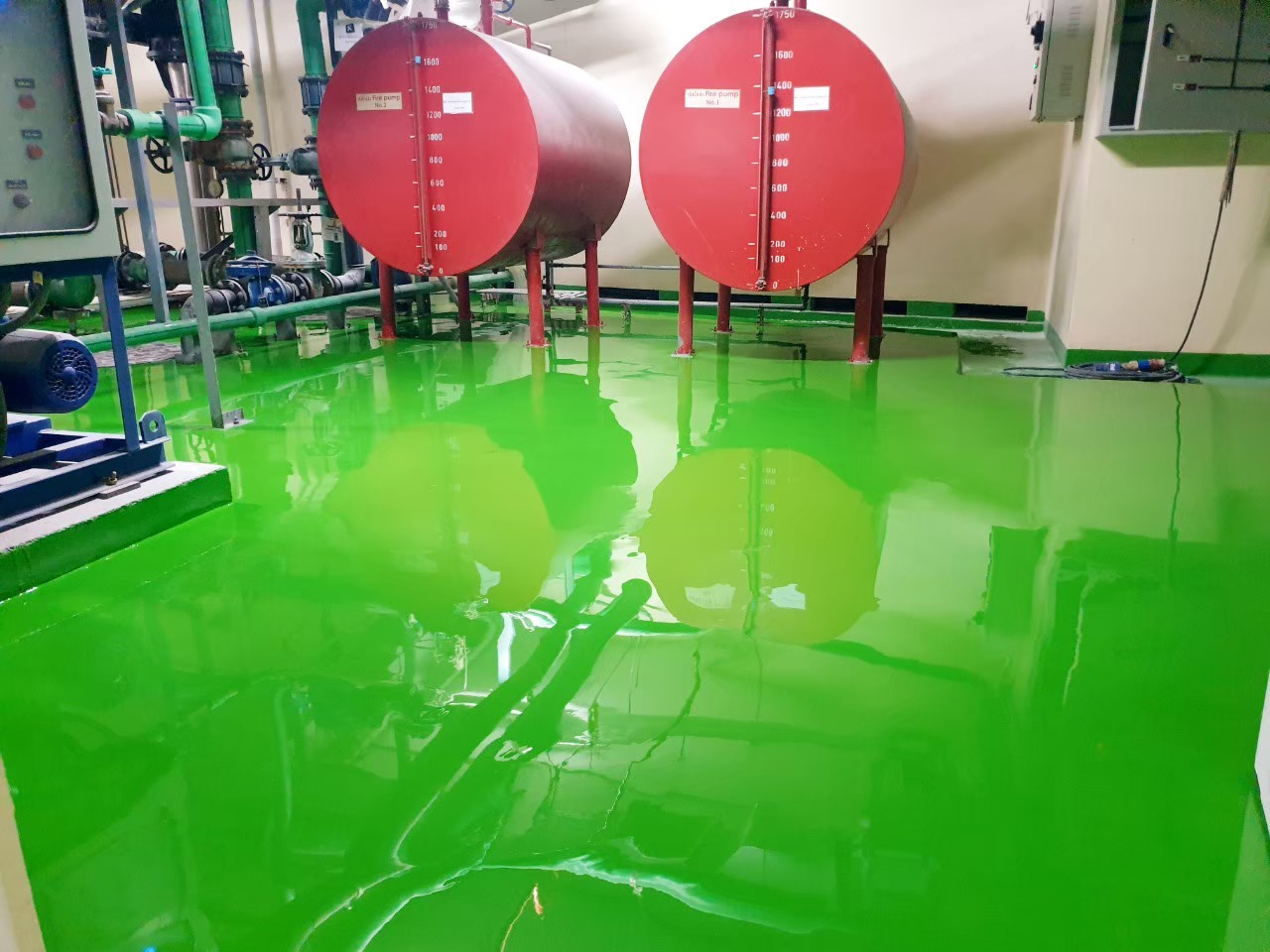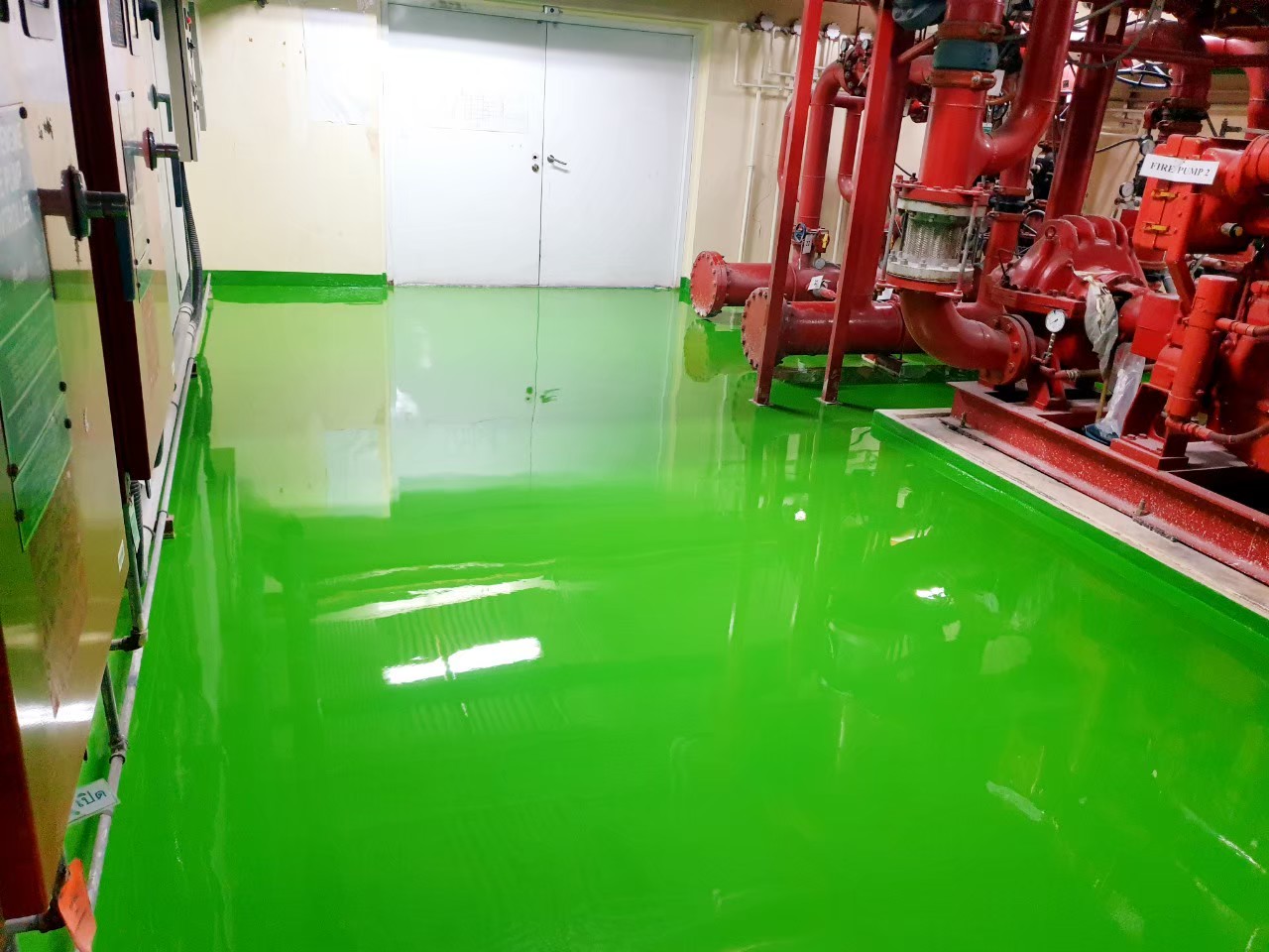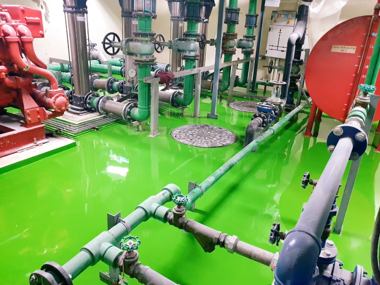Epoxy self leveling – พื้นอีพ๊อกซี่ ห้องไฟร์ปั้ม ห้องเครื่องภายในอาคาร โรงพยาบาลจุฬาลงกรณ์ สภากาชาดไทย
